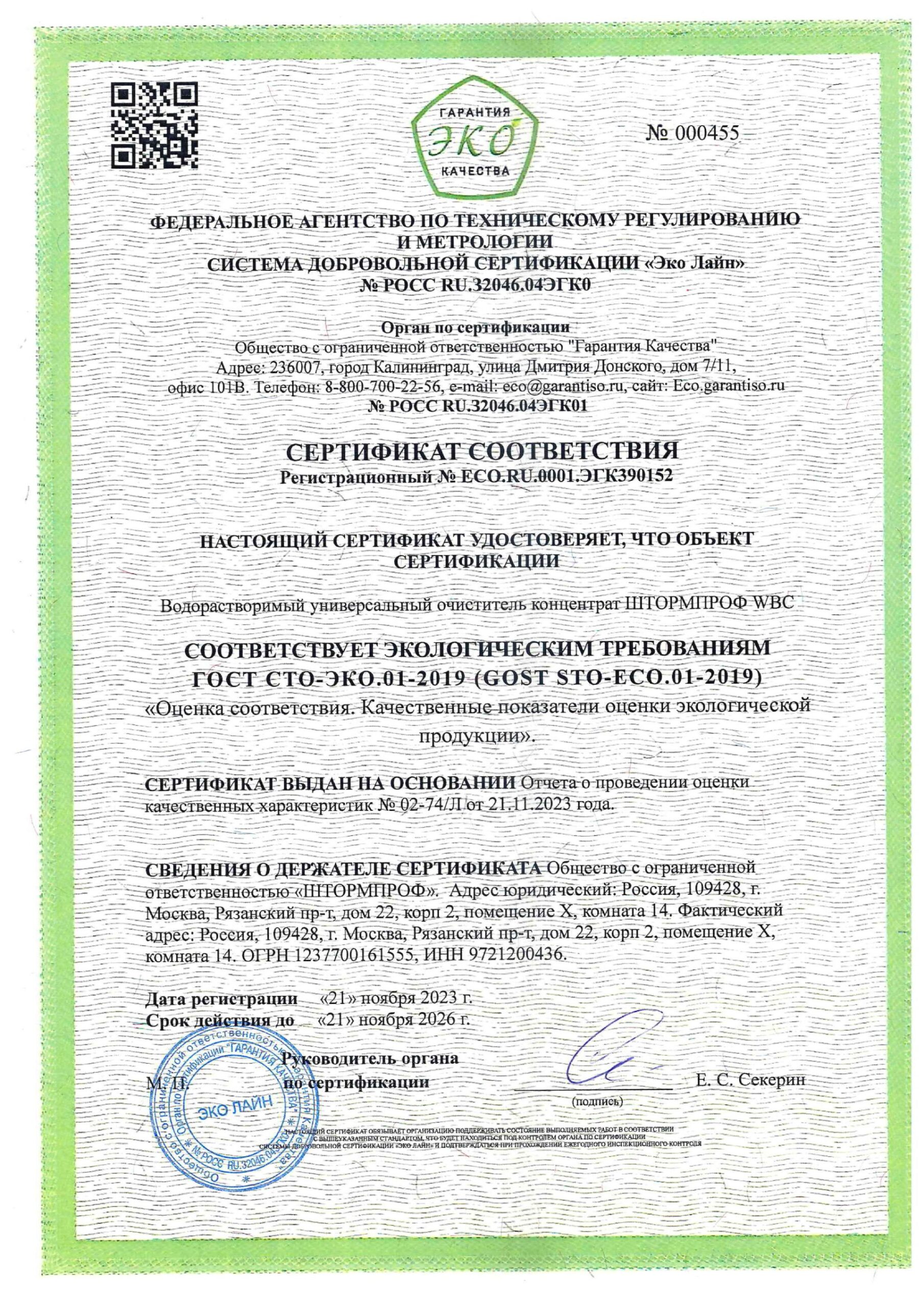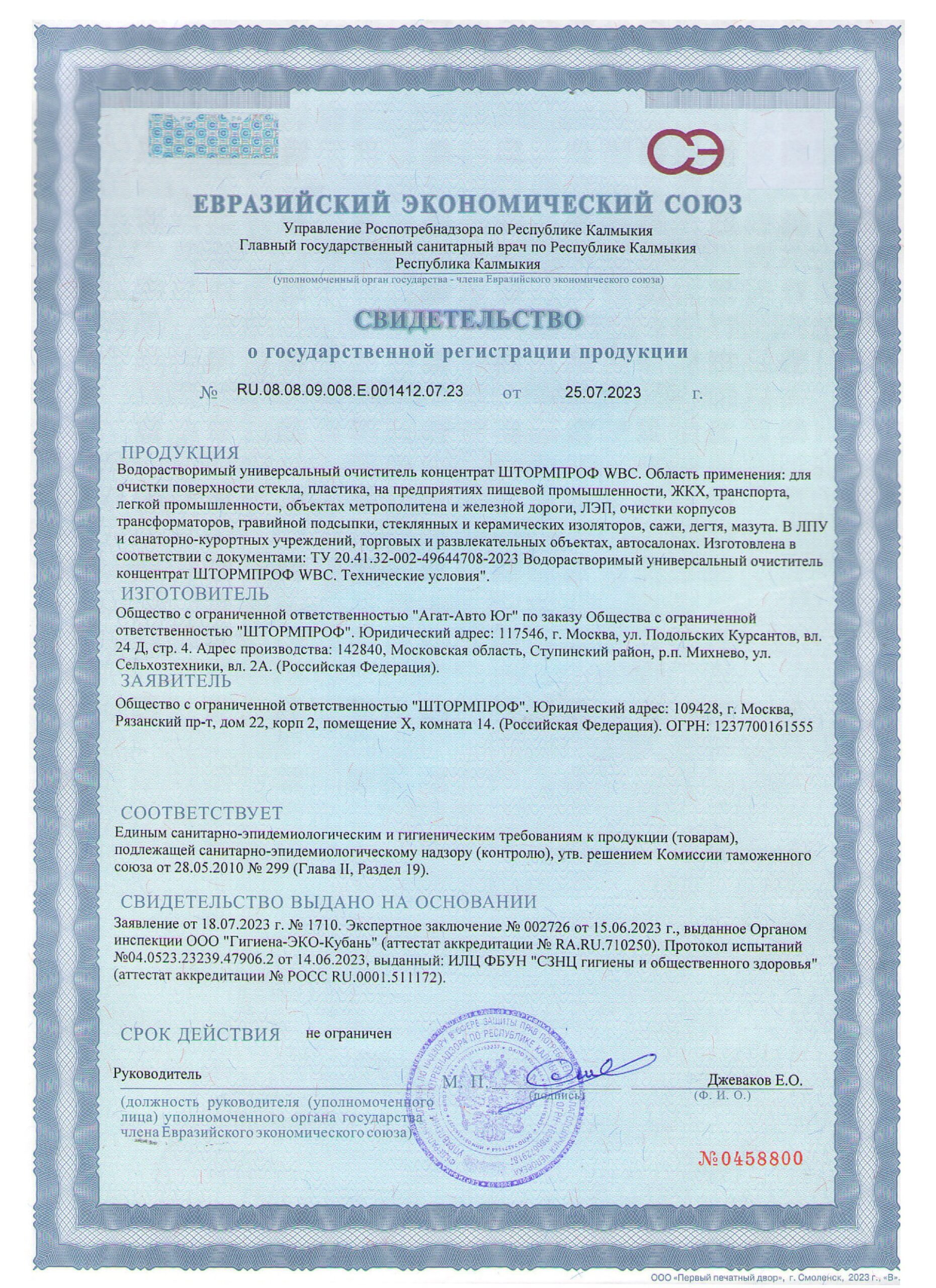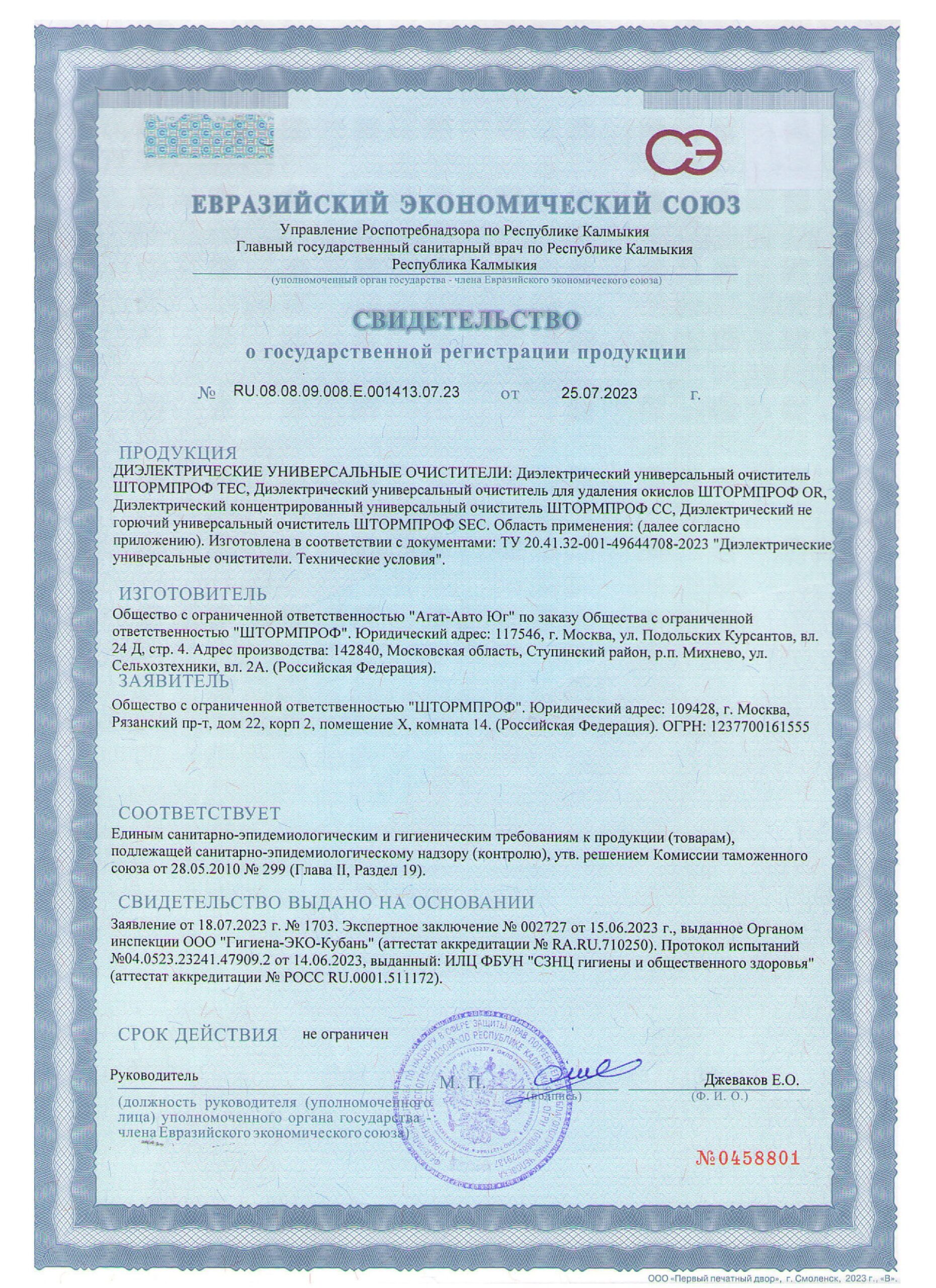 Свидетельства государственной регистрации и протоколы испытаний продуктов